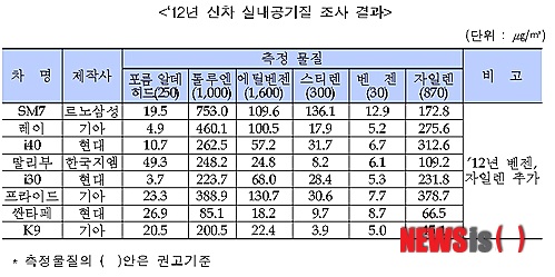 다만 정부 차원의 신차 실내공기질 관리는 우리나라가 유일하다.