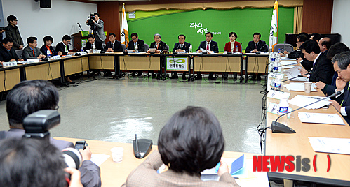【서울=뉴시스】박대로 기자 = 전당대회 성격과 개최시기 등을 놓고 민주통합당 내 갈등이 불거진 가운데 20일 당 소속 전국 시도당 위원장들이 정기전당대회 대신 임시전당대회를 개최해야 한다고 한목소리를 냈다.