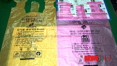 한편 환경부가 지침으로 규정한 소각용 쓰레기봉투 규격은 36㎝x53.5㎝(1926㎠)이며 음식물 쓰레기봉투 규격은 33㎝x56.5㎝(1864.5㎠)다.