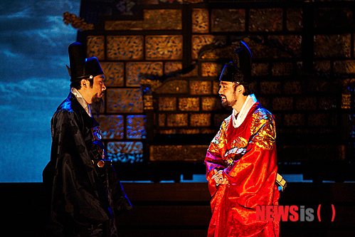 연극 '광해, 왕이 된 남자'는 태생부터 동명영화 아우라의 그림자를 떠안는다. 필연히 이는 '양날의 검'으로 작용한다. 1000만명 이상이 본 동명 영화(감독 추창민)가 바탕이라는 점에서 인지도는 쌓아 놓고 시작한다. 영화가 작품성을 인정 받은 만큼 그러나 잘해야 본전이라는 인식이 발목을 잡는다.
