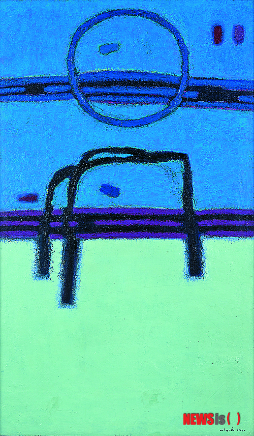 혼례 경매에는 김환기의 1961년 작 ‘산월’이 15억원에 출품된다. 짙은 청색과 엷은 청회색이 화면을 크게 두 개로 나누며, 둥근 달과 산이 단순화된 선으로 그려진 작품이다.