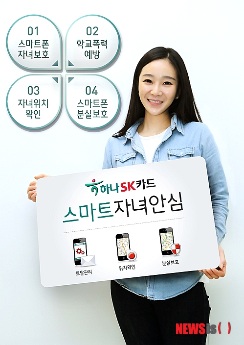 【서울=뉴시스】박기주 기자 = 하나SK카드는 13일 스마트폰 원격제어를 통해 자녀스마트폰 사용시간 관리, 유해 컨텐츠 차단, 폭력성 SMS 실시간 알림 등을 제공하는 '스마트자녀안심서비스' 앱을 출시한다고 밝혔다.