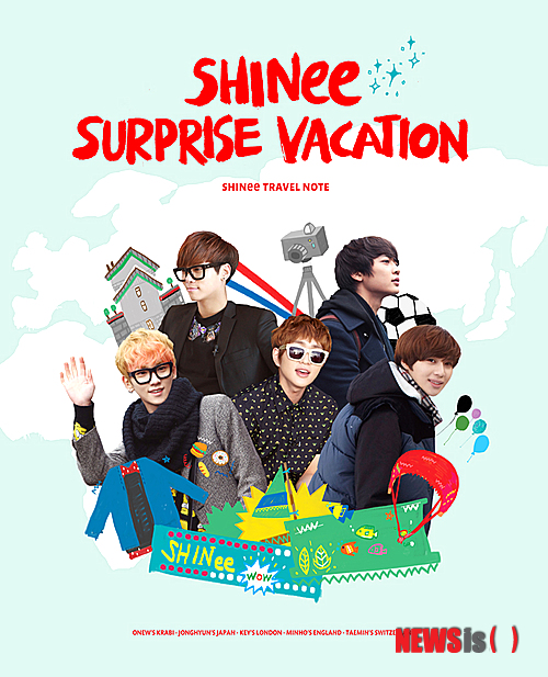 【서울=뉴시스】이재훈 기자 = 그룹 '샤이니' 멤버들이 자신들의 여행 에피소드를 담은 '샤이니 서프라이즈 베케이션(SHINee SURPRISE VACATION)'을 25일 펴낸다.