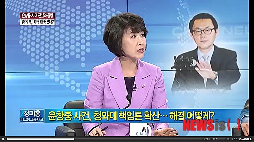 13일에는 '뉴스특보'에 출연한 KBS 아나운서 출신 정미홍(55)씨의 '윤창중 비호 발언'이 논란이 됐다. 정씨는 이날 방송에서 성추행 의혹으로 경질된 윤창중(57) 전 청와대 대변인의 성추행 의혹과 관련, "아직 수사 중이고 경범죄로 신고된 사안인데 마치 성폭력을 해서 사람을 목 졸라 죽이기라도 한 분위기라고 본다. 미친 광기가 아니고 뭔가"라고 말했다. 방송 이후 정씨가 운영하는 더코칭그룹 홈페이지로 항의가 빗발치며 사이트가 마비되기도 했다.