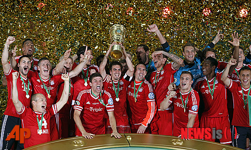 정규리그 23라운드 만에 조기 우승을 확정지은 뮌헨은 지난달 26일 유럽축구연맹(UEFA) 챔피언스리그 정상에 오른 데 이어 이날 컵대회 우승트로피까지 들어올려 시즌 3관왕의 위업을 달성했다.