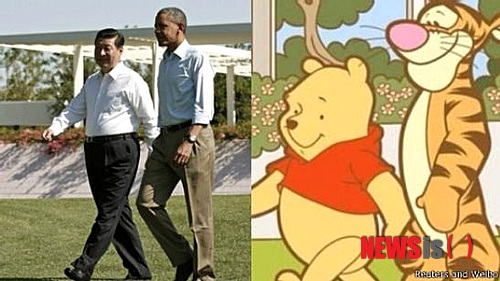 12일 BBC 중국어판에 따르면 홍콩의 한 네티즌은 최근 시 주석이 지난 7∼8일 미국 방문 때 버락 오바마 미국 대통령과 캘리포니아주 란초미라지의 휴양지에서 함께 산책하는 사진 옆에 푸가 티거와 함께 걷는 사진을 붙여 자신의 웨이보에 올렸다.