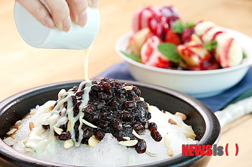 ○…광장동 쉐라톤 그랜드 워커힐의 로비라운지 ‘더 파빌리온’과 다이닝&카페 ‘더 뷰’는 ‘애플망고’, ‘홍시’, ‘트리플 베리’, ‘아포카토’, ‘밀크 팥빙수’ 등 빙수 5종을 내놓았다. 눈꽃처럼 부드러운 밀크 얼음 또는 아이스크림을 베이스로 팥, 찹쌀떡 등이 곁들여진다. 스몰(1인)과 라지(2인) 중 고를 수 있다. 종류별로 1만5000~2만5000원(스몰 기준)
