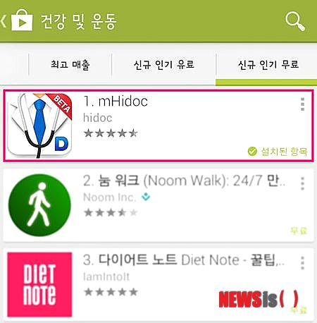 【서울=뉴시스헬스/뉴시스】 건강관리 어플 엠하이닥이 출시 첫 주 만에 인기 어플 1위에 올랐다.