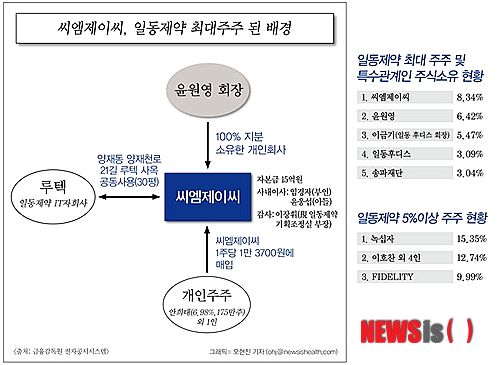 27일 금감원 전자공시시스템과 일동제약 등에 따르면 지난달 30일 윤 회장이 대표이사로 등재된 씨엠제이씨가 개인주주 안희태외 1인과 체결한 장외주식매매계약을 이행함에 따라 윤 회장을 제치고 일동제약 최대주주로 올라섰다.