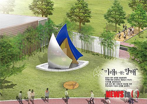 매설지 지상부에 설치될 기념조형물은 ‘미래를 여는 항해’로 동북아 해양수도로 비상할 역동적인 부산의 모습을 요트 돛으로 형상화해 제작하게 된다.