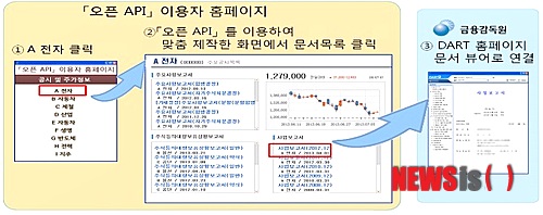 금감원 오픈 API 이용자는 DART '오픈 API 개발가이드'를 참고해 공시보고서 목록과 기업개황 자료를 이용한 맞춤화면을 제작할 수 있다.