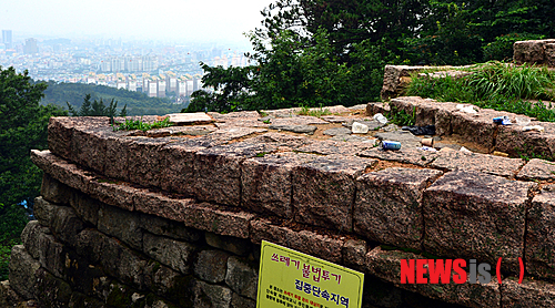 하지만 '무진고성지'에 들어서자 가장 먼저 눈에 들어온 것은 넓게 펼쳐진 광주 도심이 아니라 바닥에 아무렇게나 버려진 담배 꽁초와 과자봉지·빈 캔 등 쓰레기였다.