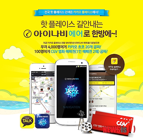 【서울=뉴시스】우은식 기자 = 내비게이션 및 블랙박스 전문기업 팅크웨어㈜(대표 이흥복)이 여름 휴가철을 맞아 스마트폰용 내비게이션인 ‘아이나비 AIR for Kakao’ 이벤트를 진행한다.