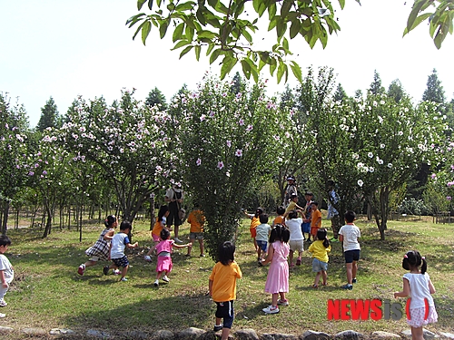 【경북=뉴시스】최창현 기자 = 경북산림환경연구원 무궁화동산에 무궁화가 만개해 8․15 광복절을 앞두고 나라사랑의 의미를 되살려보는 자연학습장으로 각광받고 있다.