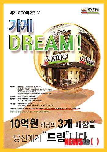 해당 이벤트 참여는 9월30일까지 치킨마루 홈페이지에서 '가게 Dream 지원서'를 다운받은 후 홍보 및 마케팅 방법에 대한 계획서를 작성해 이메일([email protected])로 접수하면 된다.