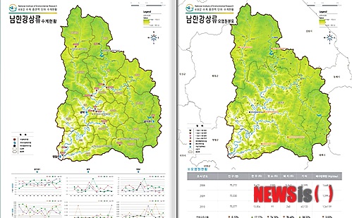 각 지도 하단에는 지난 2008년부터 2010년까지의 월별 수질변화를 한눈에 볼 수 있는 그래프와 3년 동안 오염원의 증감현황을 확인할 수 있는 도표가 담겼다.