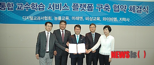 【서울=뉴시스】한재갑 교육전문기자 = 디지털교과서협회와 5개 교과서 출판사(능률교육, 미래엔, 비상교육, 지학사, YBM)는 ‘통합 교수학습 서비스’를 개발하기로 합의하고 협약식을 했다고 8일 밝혔다.