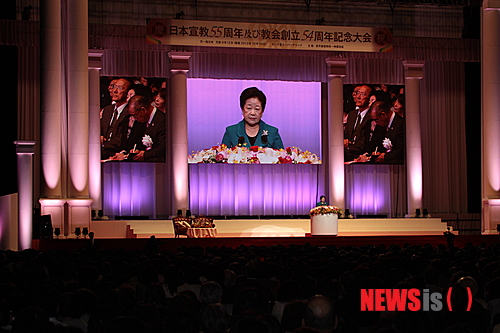 한 총재는 16일 오후 2시 도쿄도 인근 사이타마현 사이타마 슈퍼 아레나에서 열린 통일교 일본 선교 55주년, 일본 협회창립 54주년 기념대회에서 강연했다.