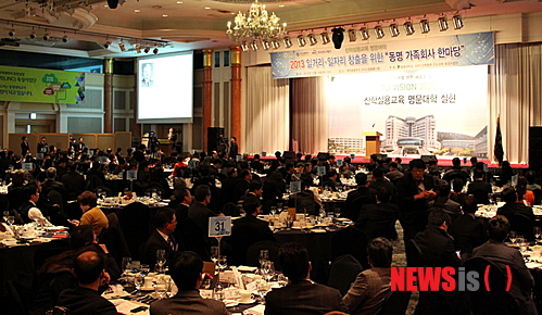 【부산=뉴시스】제갈수만 기자 = 동명대(총장 설동근)는 19일 오후6시30분 서면 롯데호텔 부산 크리스탈볼룸에서 허남식 부산시장, 조성제 부산상의 회장, 최철안 부울중기청장, 학교법인 동명문화학원 서의택 이사장, CEO 등 400여명이 참석한 가운데 ‘일거리·일자리 창출을 위한 2013 동명대 가족회사 한마당’ 행사를 가졌다.