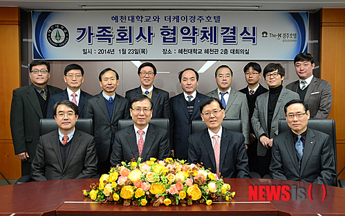 【대전=뉴시스】유순상 기자 = 혜천대는 23일 교내 혜천관 2층 대회의실에서 The-K 경주호텔(사장 강구도)과 가족회사 협약을 체결했다.