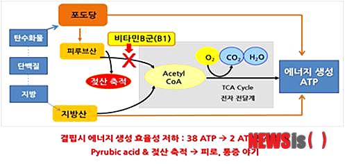 3대 영양소인 탄수화물, 단백질, 지방은 에너지대사 과정 중에 비타민B군이 조효소로 작용해 에너지로 전환된다.