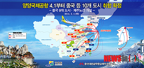 강원도에 따르면 양양국제공항에서 4월1일부터 6월말까지 중국 요녕성 등 9개 도시와 제주를 연결하는 10개 취항도시가 확정돼 공항 활성화에 탄력을 받게 됐다.