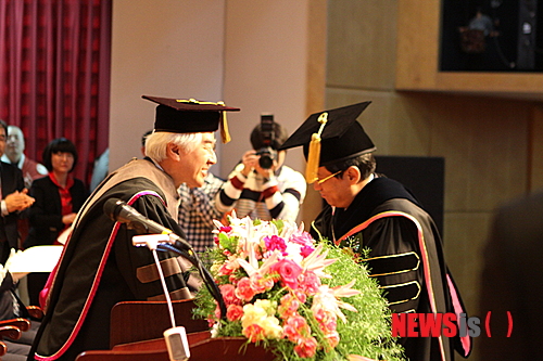 【논산=뉴시스】유순상 기자 = 금강대는 21일 교내 대강당에서 정병조 총장과 김도용 학교법인 이사장(대한불교 천태종 종정) 등이 참석한 가운데 2013학년도 전기 학위수여식을 개최하고 학사 34명에게 학위를 수여했다.