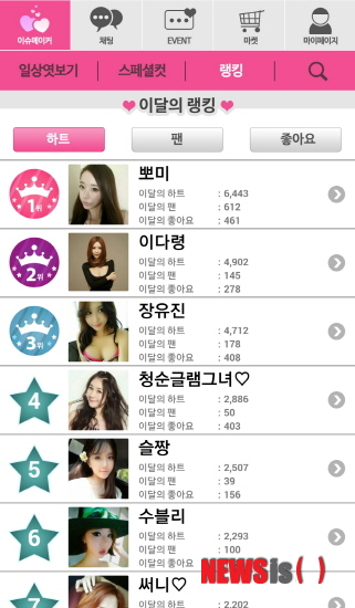 한편 이슈메이커 앱은 유저들의 재미뿐만 아니라 사회공헌활동이 가능한 프로모션도 진행하고 있다. 걸그룹 레이티와 트랜디와 함께 하트를 기부하는 걸그룹 기부배틀을 마련한 것. 기부배틀을 통해 발생한 수익금은 전액 결식아동에게 전달된다.