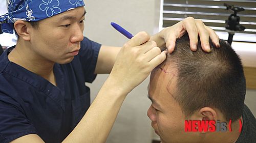 【서울=뉴시스】민기홍 기자 = 젊은 탈모 환자들이 모발이식을 결심하는 시기는 M자 탈모로 이마의 머리카락이 모두 빠지고 정수리까지 모발이 가늘어지거나 머리숱이 줄어드는 때다.