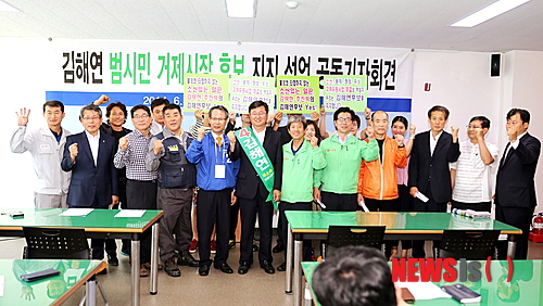 거제지역 새정치민주연합과 통합진보당 등 야3당과 농민회 등 6개 시민사회단체는 2일 오후 거제시청 브리핑룸에서 기자회견을 열고 "김 후보에 대한 지지를 선언한다"고 밝혔다.