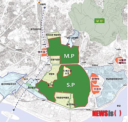 한편 지난 2011년 계획에서 발표된 용산 미군기지 중 사우스포스트(S.P)와 메인포스트(M.P)등 약 243만㎡ 규모는 기존 예정대로 공원으로 조성된다. 현재 이 곳은 개발계획 수립 단계에 있다.