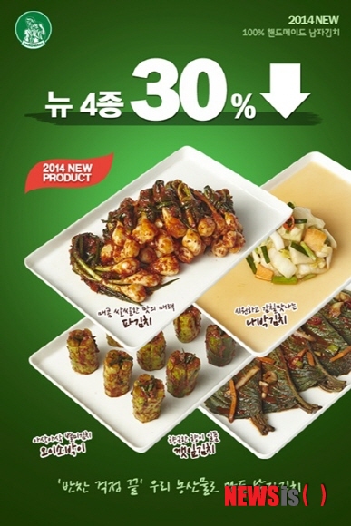 【서울=뉴시스】민기홍 기자 = 프리미엄 김치 브랜드 ‘남자김치’가 별미 김치 4종(오이소박이, 나박김치, 깻잎김치, 파김치) 출시 기념, 30% 할인 프로모션을 실시한다고 17일 밝혔다.