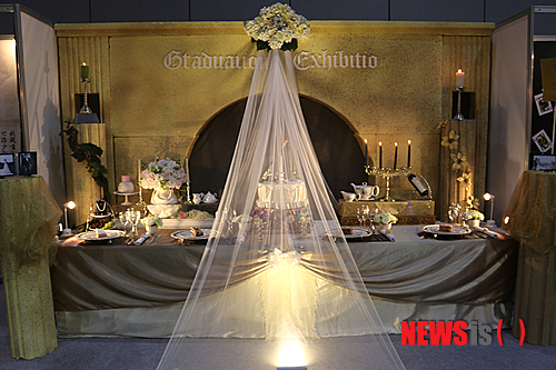 이번 박람회에서 테이블셋팅 부문 단체전 대상을 차지한 경주대 외식조리학부 현진호, 김정도, 김태훈, 이인찬, 김수정, 김정빈 학생은 아크로폴리스에서의 결혼식이란 신전결혼식을 주제로 ‘아프로디테와 헤파이스토스의 결혼식’을 테이블에 연출했다.