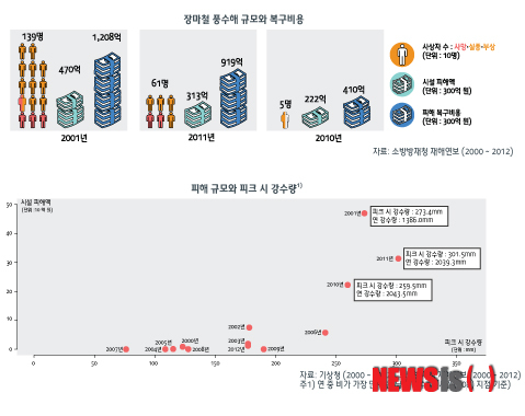 복구비용은 2001년 1210억 원, 2011년 919억 원, 2010년 410억 원으로 집계됐다.