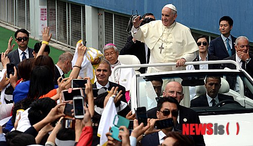 프란치스코 교황은 애초 헬기를 타고 경기장을 찾을 예정이었으나 KTX를 선택했다.