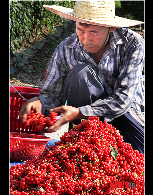 【문경=뉴시스】김진호 기자 = 우리나라 오미자 생산량의 45%를 차지하는 경북 문경지역 오미자가 제철을 맞아 수확이 한창이다.