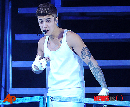【서울=뉴시스】이재훈 기자 = '악동'으로 거듭난 캐나다 출신의 팝스타 저스틴 비버(20)가 미국 관객의 야유 속에 '스트립쇼'를 펼쳐 또 다시 구설에 올랐다.