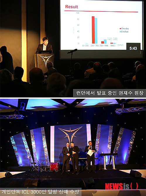 발표를 마친 권 원장은 '개인 단독 ICL 3000안 달성'에 대한 성과를 인정받아 상패를 받았다.