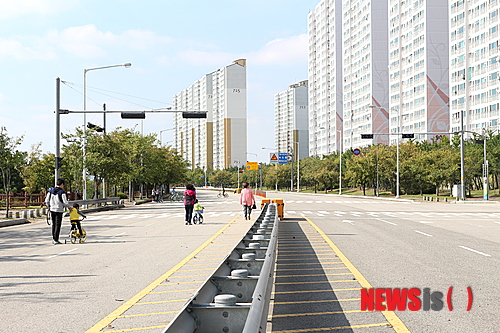 차량 통행이 통제된 6차선 도로 위는 주민들이 자유롭게 활보하고 있었다. 초등학생으로 보이는 아동 6명은 도로위에서 자전거 경주를 하고, 아예 도로 한 켠에 돗자리를 펴고 앉은 가족도 있었다.