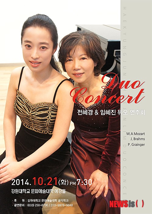 【춘천=뉴시스】전형준 기자 = 강원대학교(총장 신승호) 음악학과 전혜경 교수와 임혜진 동문의 피아노 '듀오 연주회'가 오는 21일 오후 7시 30분 교내예강홀에서 열린다.