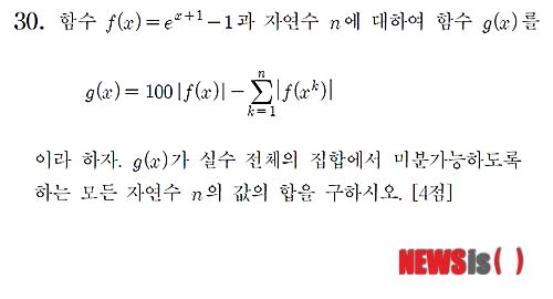 남윤곤 메가스터디 입시전략연구소장은 "미분과 수열이 연계된 문제로 두 가지 개념을 종합적으로 적용해 해결해야 하기 때문에 학생들에게는 어려웠을 것"이라고 말했다.