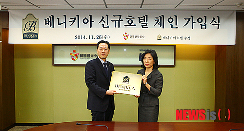 이와 관련 호텔수성은 지난달 26일 한국관광공사와 베니키아 호텔체인 협약식을 가졌다.