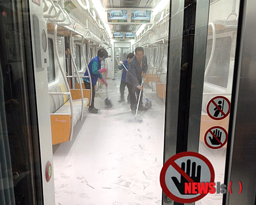 26일 서울메트로에 따르면 성탄절인 지난 25일 오후 7시55분께 신사역으로 진입하는 3호선 오금행 지하철 두 번째 칸에서 신원 미상의 남성이 전동차 안에 있는 소화기를 사방에 분사했다.