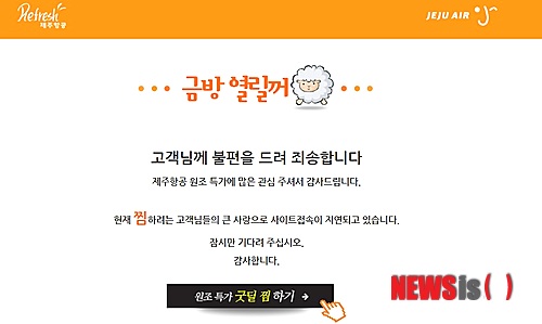 제주항공 측은 홈페이지가 마비되자 '금방 열릴꺼양'이라는 사과글을 게재했다.
