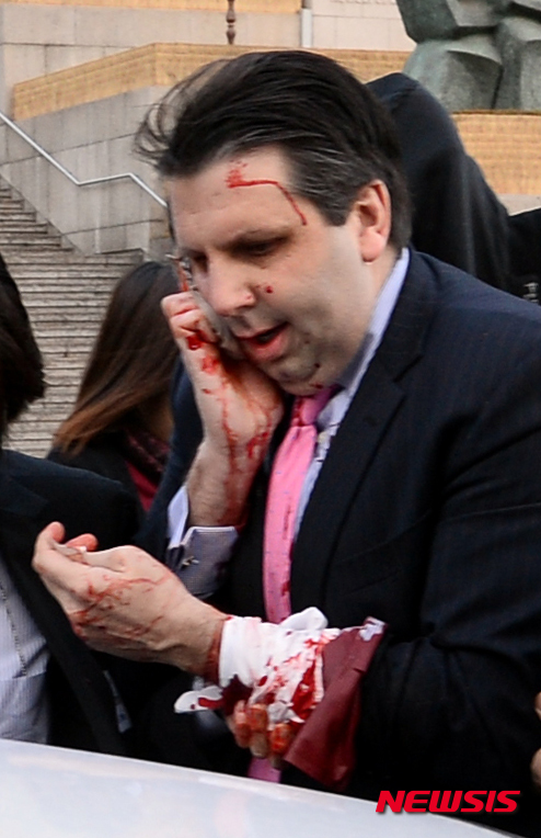경찰에 따르면 리퍼트 대사는 이날 오전 7시42분께 세종문화회관 세종홀 내에서 민족화해협력범국민협의회 초청 조찬 강연 준비 도중 김씨가 휘두른 면도칼에 오른쪽 얼굴과 손목 부위를 다쳤다. 리퍼트 대사는 피를 많이 흘려 병원 응급실에서 치료를 받고 있다.