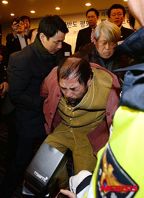 그는 지난 2010년 7월7일 오후 서울 프레스센터에서 강연을 마친 당시 주한 일본대사 시게이에 토시노리씨에게 "왜 독도를 다케시마라 하느냐"고 질문한 뒤 대사에게 콘크리트 조각을 던진 혐의(외국사절 폭행혐의 등)로 구속기소됐다.