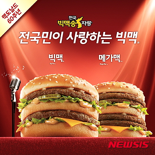 한편 맥도날드는 오는 24일 전국 맥도날드 매장에서 '빅맥 빅데이' 이벤트도 진행한다. 오후 4시부터 6시까지 맥도날드 매장을 방문해 빅맥송을 부르는 고객에게는 빅맥 단품 1개씩이 무료로 제공된다. 매장당 선착순으로 100명까지 참여가 가능하다. 개인별 또는 그룹별로 1회씩 도전할 수 있다.