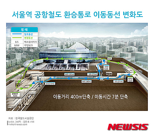 【서울=뉴시스】김정환 기자 = 한국철도시설공단(이사장 강영일)이 발주한 ‘공항철도 연계시설 확충사업’이 성공리에 마무리돼 오는 28일 ‘서울역 환승 통로’를 개통한다.