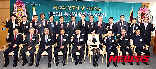【울산=뉴시스】유재형 기자 = 울산상공회의소(회장 전영도)는 27일 5층 회의실에서 '제42회 상공의 날 기념식 및 제27회 울산상공대상 시상식'을 개최했다.