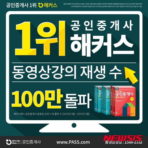 【서울=뉴시스】유희연 기자 = 부동산·주택교육 사이트 방문자수 1위 ‘해커스패스’의 공인중개사(www.PASS.com) 동영상 강의 누적 재생수가 100만 번을 돌파했다.